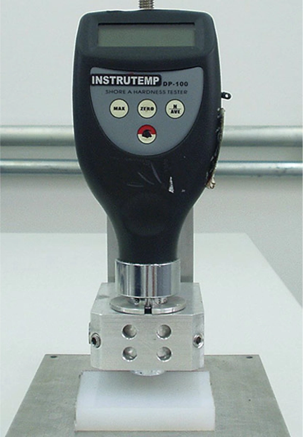 O ensaio pode ser utilizado para determinar a dureza Shore A ou Shore D, e é medida pela resistência à penetração de um endentador quando aplicada uma carga sobre a mesmo. A dureza está relacionada ao módulo elástico e viscoelasticidade do polímero.