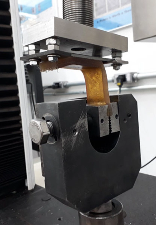 O ensaio determina a resistência do destacamento de um adesivo, medindo a força de remoção de corpos de prova colados até a descolagem final dos mesmos ou ruptura de algum deles.