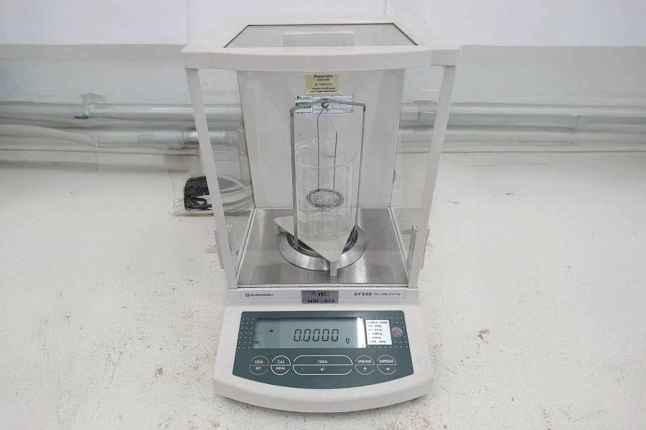 O teor de umidade de um plástico está intimamente relacionado com propriedades elétricas, mecânicas e de processamento dos polímeros. Neste ensaio a amostra é imersa em água e a absorção é medida pela variação de massa do material.