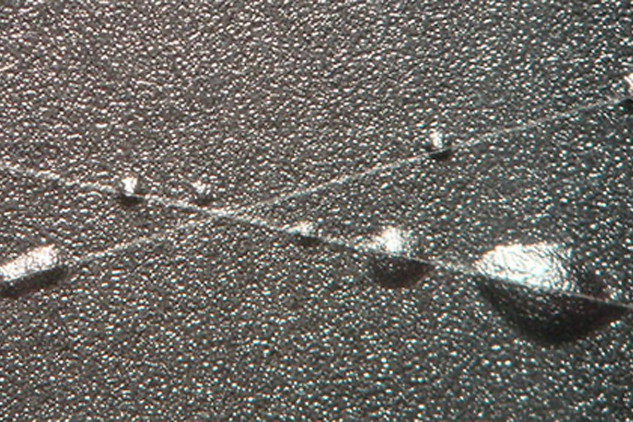 No ensaio de corrosão filiforme um risco em “X” é feito no revestimento até que o substrato seja atingido e, em seguida, submete-se a amostra ao salt-spray, com temperatura e umidade especificados. Após 24h realiza-se uma medição do avanço do dano ocasionado pela corrosão.
