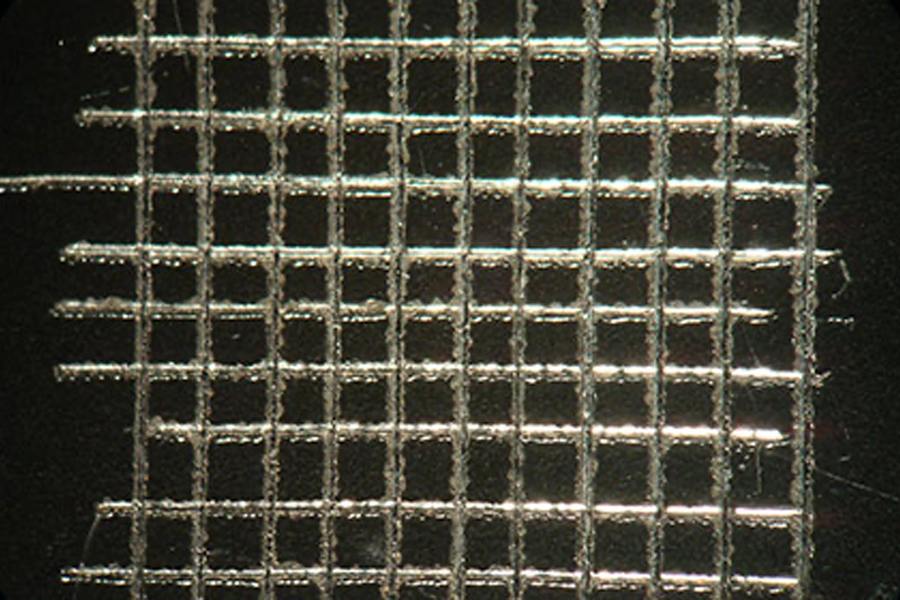 Uma faca padronizada é utilizada para cortar o revestimento para que 100 quadrados de 1mm2 sejam formados. Para a remoção dos quadrados é utilizada uma fita adesiva de celofane, também especificada, e posteriormente são contados o número de quadrados cuja área removida supera 50%.