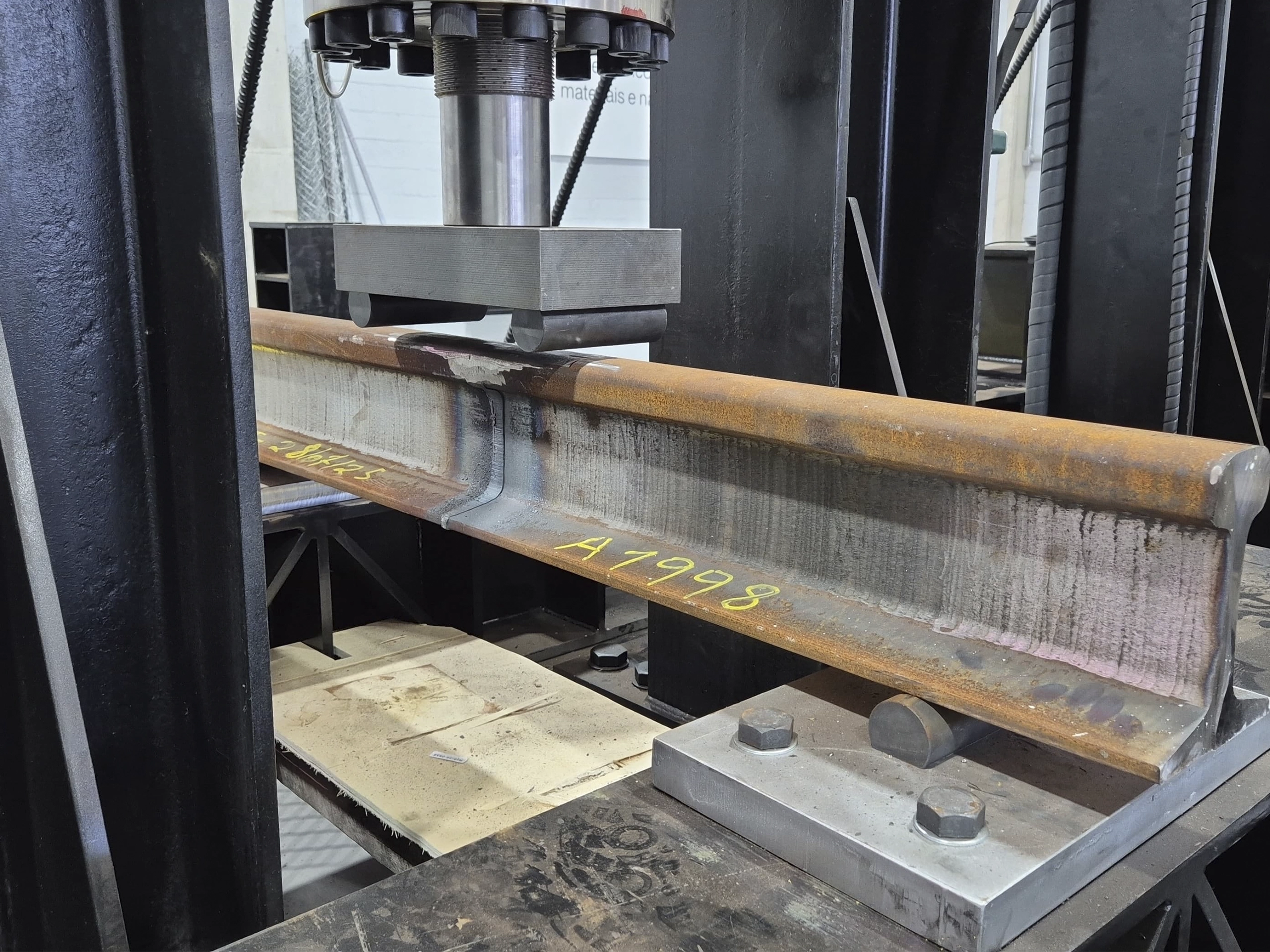 Para determinar a resistência mecânica em soldas de trilhos ferroviários, é utilizado o ensaio de flexão em 3 ou 4 pontos (a depender da norma utilizada), em um taxa de carregamento lenta (Slow Bend Test). Os trilhos podem ser submetidos ao carregamento até os valores mínimos de Carga e Deslocamento (flecha) , exigidos pelas normas, ou até sua ruptura.